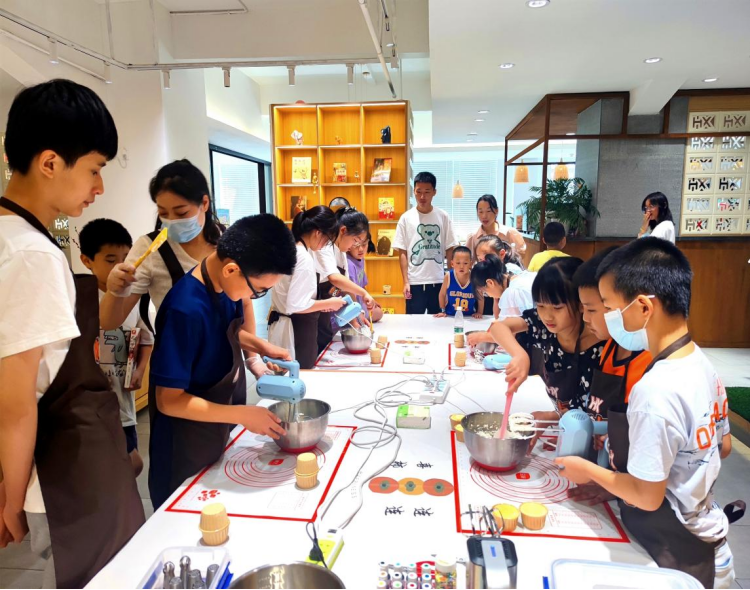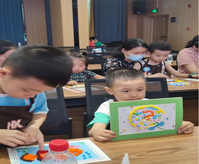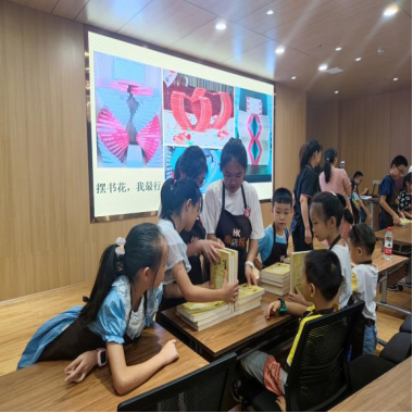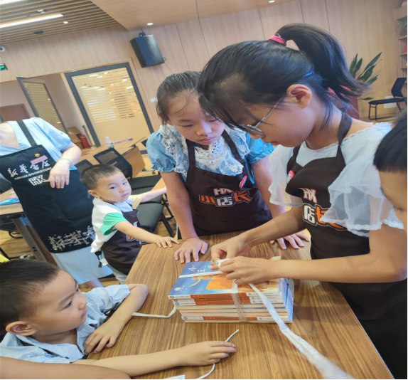 一进新华书店,工作人员就热情地安排小朋友们当起了小店长,体验书店工作。书店工作人员向“小店长们”介绍新华书店的由来,带领“小店长们”了解新华书店各个区域书本的放置,了解书架的排列和图书的分布,教授“小店长们”相关操作技能如书籍打包、对图书进行造型设计等。另外,书店组织观看红色电影《半条棉被》,了解长征精神,让小朋友们认识到今天的幸福生活来之不易,要珍惜当下的美好生活,继承和发扬革命的优良传统。同时,还组织小朋友们开展毛绒球粘贴画、烘焙等手工制作,体验生活,进一步提高动手能力。