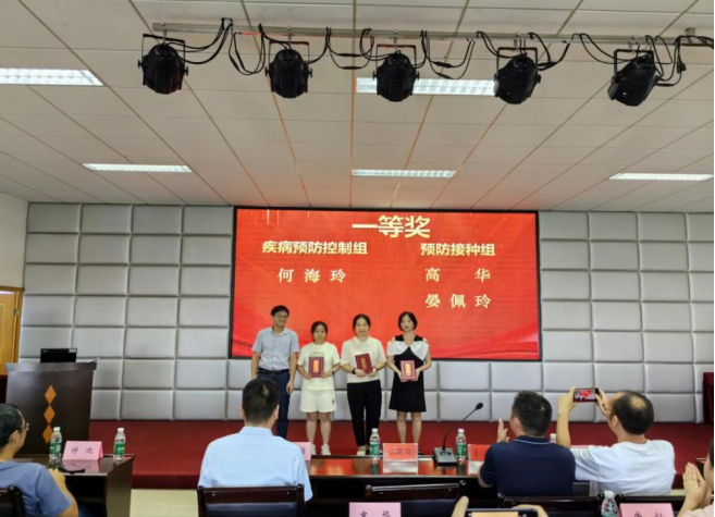 经角逐,疾病控制组赫山区疾控中心何海玲;预防接种组南县南洲镇卫生院高华和南洲社区卫生服务中心晏佩玲荣获一等奖。疾病控制组桃江县疾控中心傅娟;预防接种组沅江市琼湖街道第三社区卫生服务中心唐灿、安化县妇幼保健院赵策明、安化县人民医院刘旺飞荣获二等奖。疾病控制组安化县疾控中心谌乐腾、资阳区疾控中心罗巧缘、沅江市疾控中心沈吟;预防接种组资阳区沙头镇卫生院张燕、南县南洲社区卫生服务中心杨子懿、资阳区长春镇中心卫生院杨眉、赫山区八字哨卫生院夏燕芝、大通湖区千山红镇卫生院郭莹荣获三等奖。