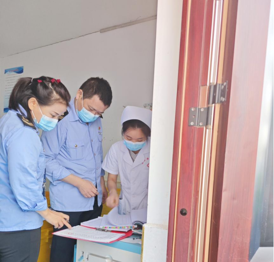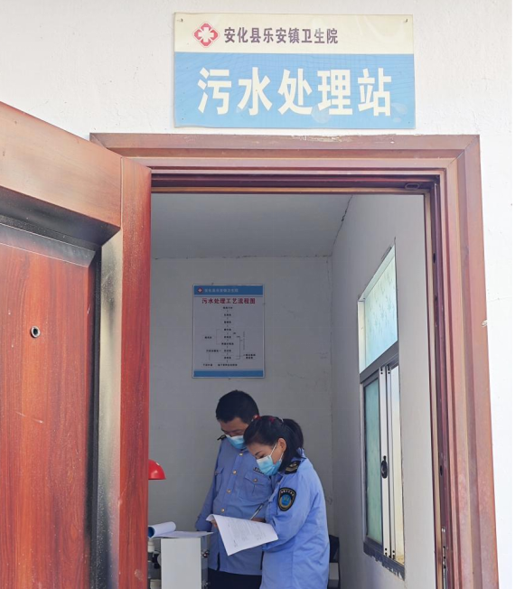 图1 执法人员在安化县乐安镇卫生院现场检查污水处置情况