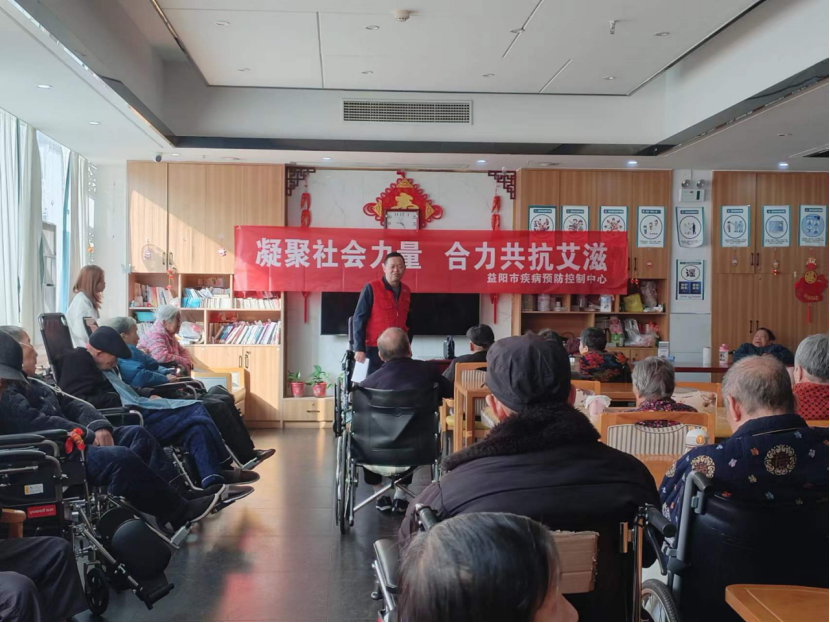 11月29日,市卫健委、市疾控中心、高新区朝阳社区卫生服务中心联合走进益阳高新区共创天亿养老院,为老人们和养老院工作人员举办了艾滋病防治知识讲座,介绍了老年人艾滋病感染状况以及主要的感染途径,讲解了抗病毒治疗的及时性、必要性,并就老人们关心的问题进行了解答。