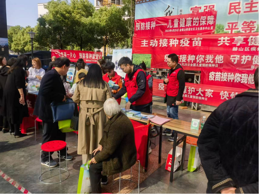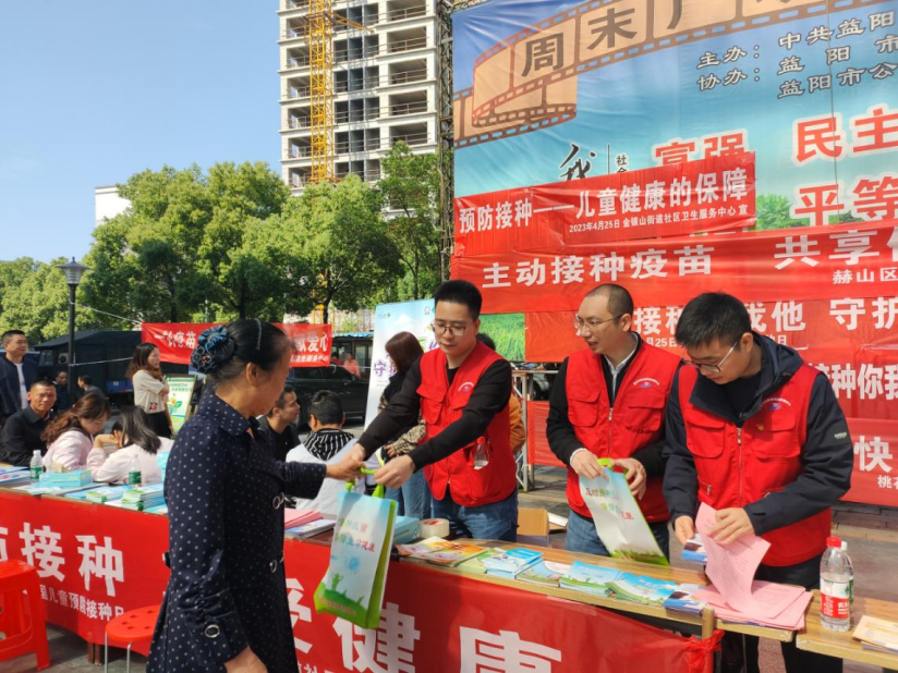 自 4 月 24 日以来,市疾控中心持续开展预防接种日宣传活动,推进活动走深走实。 4月26日上午,益阳市疾控中心联合赫山区疾控中心和赫山区赫山社区卫生服务中心、朝阳社区卫生服务中心、金银山社区卫生服务中心、桃花仑社区卫生服务中心,龙光桥社区卫生服务中心等在赫山区茶叶市场开展2023年“全国儿童预防接种日”现场宣传活动。
