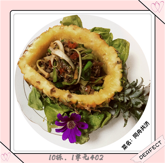 我的菜名叫“团聚合欢”,我的菜名叫“鹦鹉望果”,意寓渴望平安生活之意,我的菜名叫“四通八达”,我的菜名叫“金玉满堂”……。