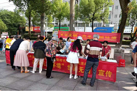 2021年5月31日,资阳区健康教育宣传中心与大码头街道办事处在鹅洋池广场举办了以“承诺戒烟、共享无烟环境”为主题的第34个世界无烟日主题宣传活动。