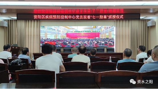 6月29日上午10时,经中共中央批准,“七一勋章”颁授仪式在人民大会堂隆重举行。29名党员获此殊荣。中共中央总书记,国家主席、中央军委主席习近平首次颁授“七一勋章”并发表重要讲话。资阳区疾控中心全体干职工收看了庆祝中国共产党成立100周年“七一勋章”颁授仪式。