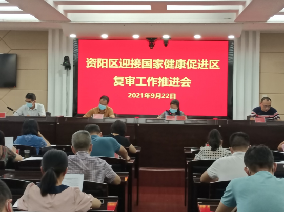 2021年9月22日,资阳区人民政府组织召开迎接国家健康促进区复审工作推进会议。2014年10月,资阳区启动健康促进区创建工作,在国家、省、市等上级部门的指导下,于2016年顺利通过国家考核验收,成功创建国家健康促进区。2021年迎接国家健康促进区复审。区人民政府办公室副主任王建辉主持会议,区人民政府常务副区长李谋出席会议并作重要讲话。