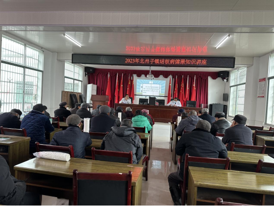 图一:北洲子镇卫生院给老年人进行健康知识讲座