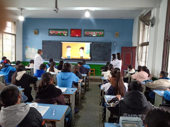 图二:千山红镇中心卫生院进校园为学生宣讲结核病防控