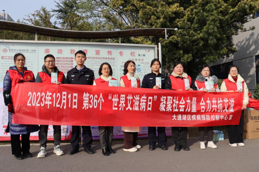 2023年12月1日是第36个世界艾滋病日,今年的宣传主题为“凝聚社会力量,合力共抗艾滋”。大通湖区疾控中心、大通湖区妇联、共青团大通湖区委、大通湖区总工会、大通湖区公安分局多部门联合进校园开展世界艾滋病日宣传活动。