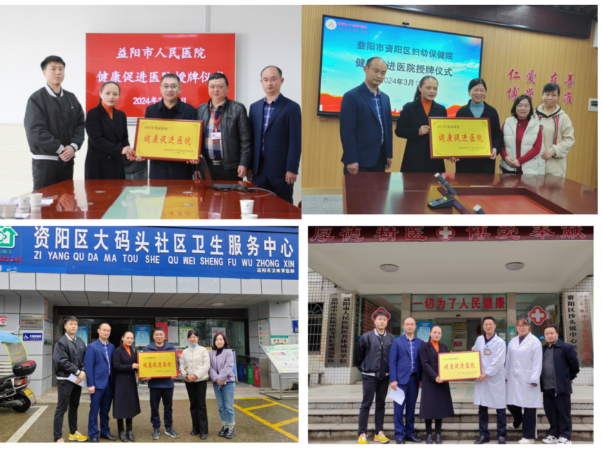 2024年3月15日,资阳区对通过健康促进医院市级评审的益阳市人民医院、资阳区妇幼保健院、资阳区大码头街道社区卫生服务中心、资阳区沙头镇中心卫生院四家医疗机构举行“健康促进医院”授牌仪式。