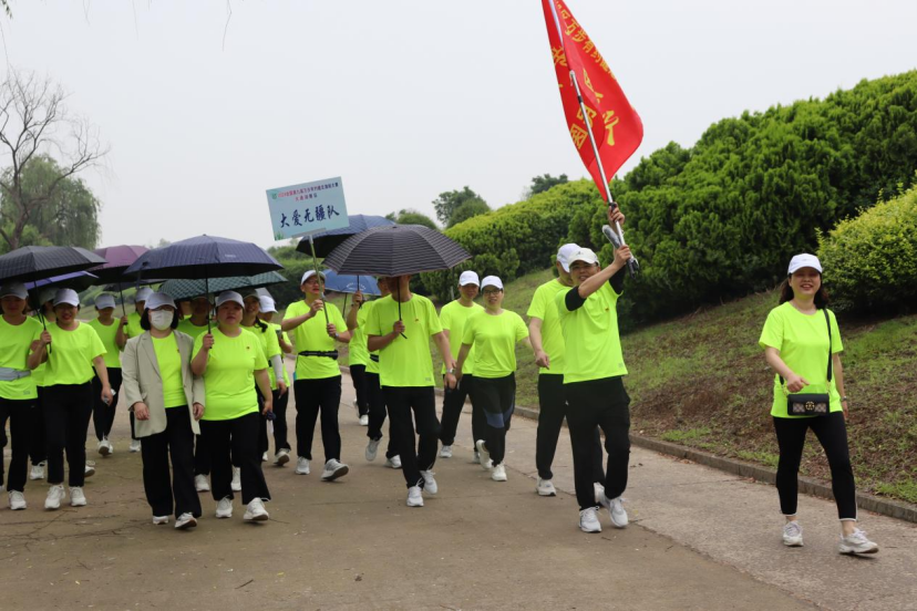 刚出发,天空下起了小雨,但丝毫没有打消大家的积极性,表示撑伞也要完成这次活动。幸运的是,天公作美,不一会儿雨就停了,雨后的生态公园沿河健走步道别有一番风景,两侧的树木郁郁葱葱,草尖上还挂着雨滴,空气格外的清新。一路上大家精神焕发,神采奕奕,迈着整齐的步伐,愉快地交谈着,形成公园里一道靓丽的风景线。
