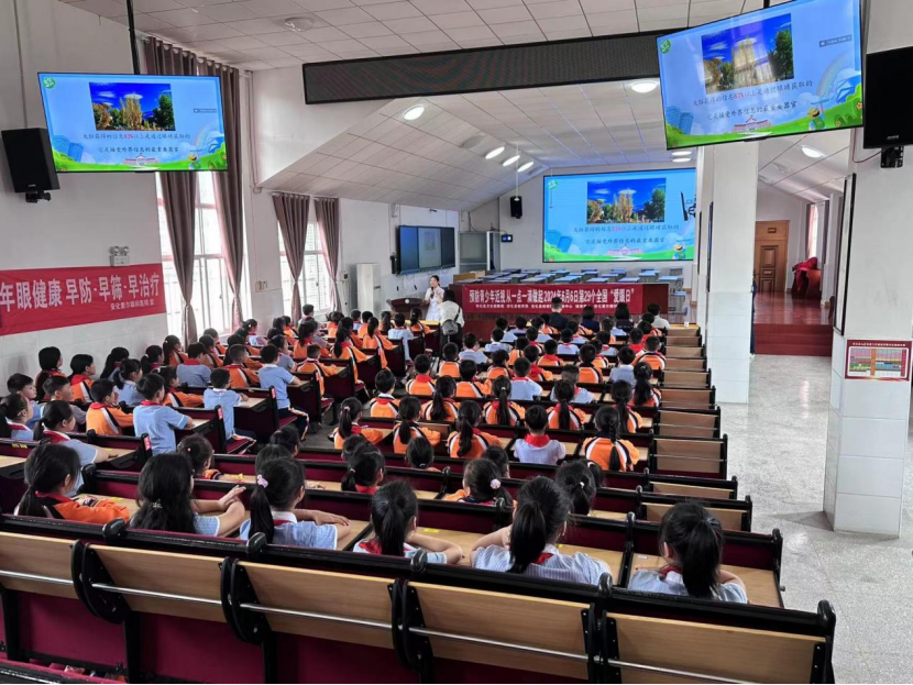 6月5日,科普团队走进东坪镇城南完小为同学们带来了近视防控专题讲座,眼科专家围绕儿童常见眼病、近视的危害、如何预防近视、保护眼睛等方面向同学们普及爱眼护眼知识,强调规范读写姿势的重要性,嘱咐大家注意劳逸结合,科学用眼,学校200余名师生参加了本次讲座。