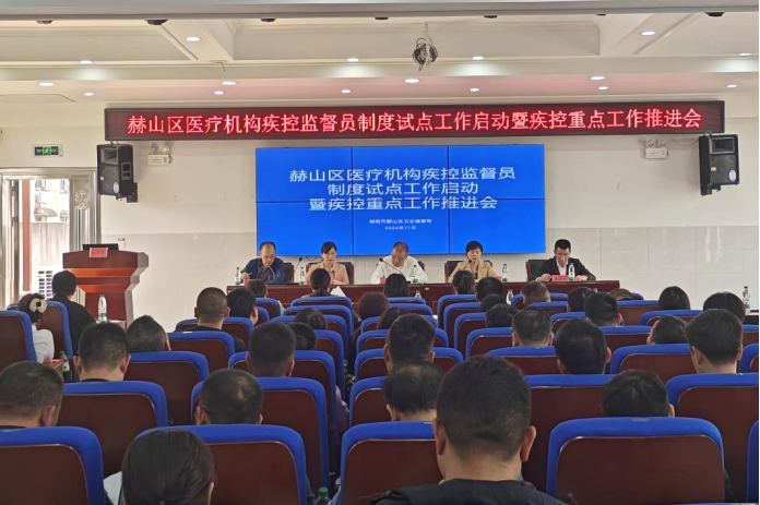 为进一步强化医防协同和医防融合,积极探索建立医疗机构疾控监督员制度,2024年11月12日,赫山区医疗机构疾控监督员试点工作启动暨疾控重点工作推进会顺利召开,区卫健局党组书记、局长盛耀光,党组副书记、副局长、区疾控局局长夏旦辉出席会议并作重要讲话,区卫健局相关股室负责人、区疾控中心(区卫监局)、全区各医疗机构负责同志、疾控监督员等百余人参加会议。