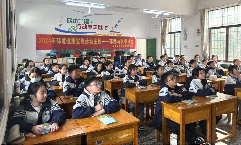 12月4日,安化县疾控中心在烟溪镇完小和渠江镇中学开展了环境健康宣传活动,活动聚焦“环境与科学消毒”主题,由中心总支书记吴建安率队,为校园带来了一场知识盛宴。