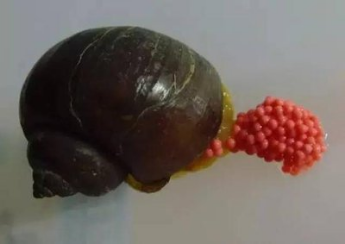 福寿螺又名大瓶螺,卵圆球形,直径2-2.5mm,初产时深红色、黏稠,孵化前变淡;喜栖于缓流河川及阴湿通气的沟渠、溪流及水田等处。