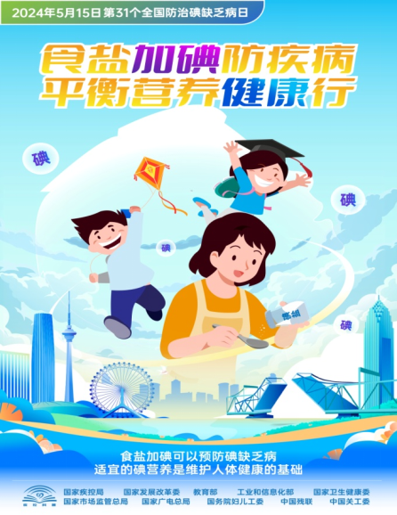 2024年5月15日是全国第31个“防治碘缺乏病日”,活动主题是“食盐加碘防疾病,平衡营养健康行”。