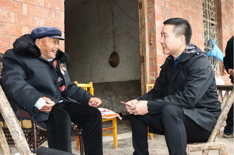在陈志新家中,县委书记罗讯与其亲切交流,促膝长谈,仔细询问了生产情况和生活状况,认真征求了对全县退役军人事务工作的意见和建议,并嘱咐随行退役军人事务局及乡镇、村(社区)负责同志真抓实干,热情服务,切实解决好退役军人及其他优抚对象的生活困难问题。