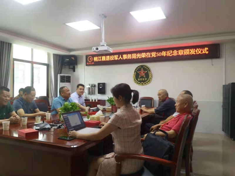 6月22日下午,桃江县退役军人事务局举行“光荣在党50年”纪念章颁发仪式。局党组全体班子成员前往军休所,为4名拥有50年党龄的军休人员颁发“光荣在党50年”纪念章,感谢他们为党和国家做出重要贡献,表达了党对他们的肯定和鼓励,并嘱咐他们保重身体,安心休养晚年。