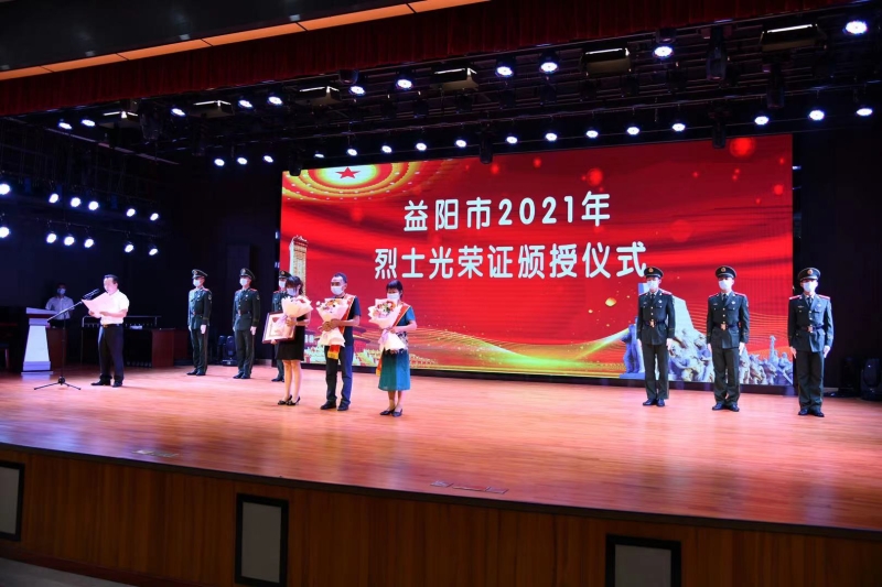 9月30日上午,益阳市2021年烈士光荣证颁授仪式在益阳医学高等专科学校。副市长、市公安局局长瞿晏平,益阳医学高等专科学校党委书记周奎出席颁授仪式。