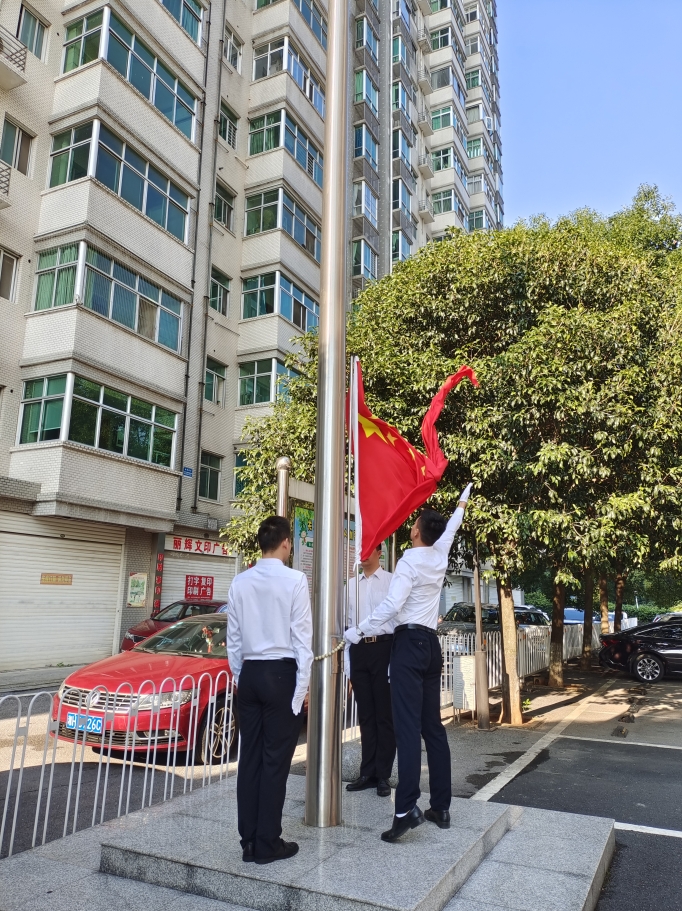 为庆祝中华人民共和国成立72周年,弘扬爱国主义精神,表达对伟大祖国的美好祝福,营造热烈、健康向上的节日氛围,根据中共益阳市委统一部署安排,10月1日上午,市退役军人事务局、市住房保障服务中心、市工商联、市贸促委联合在机关大楼举行升国旗仪式。