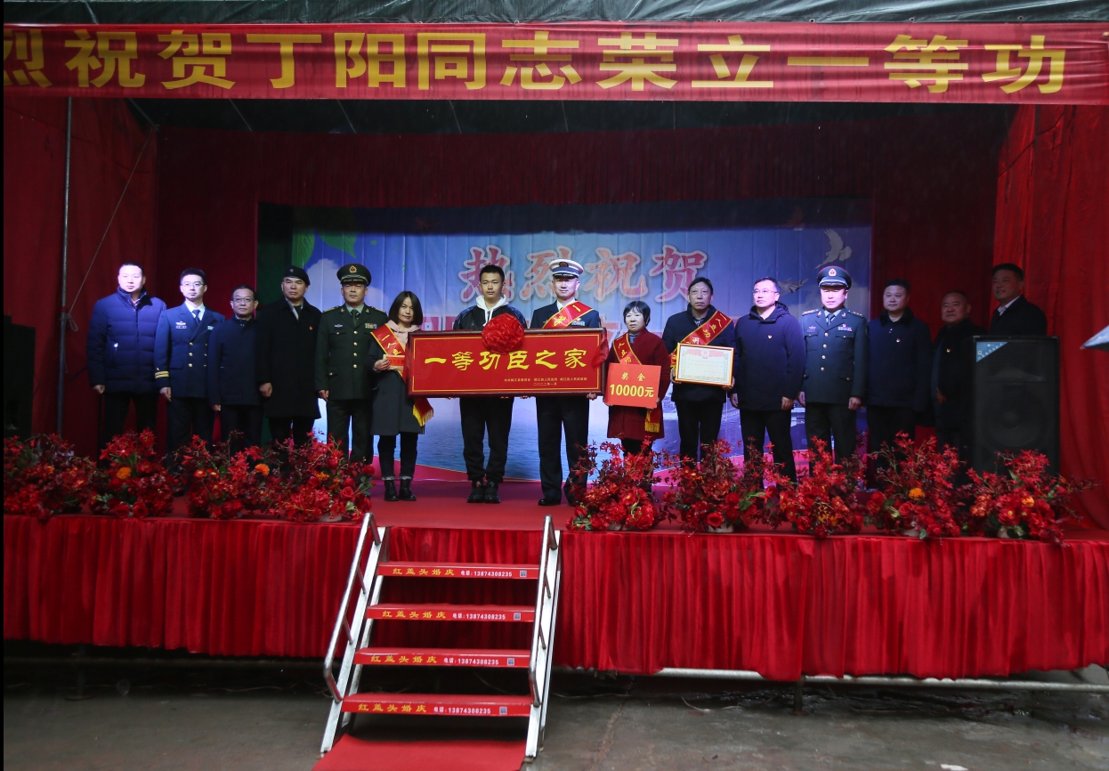 丁阳感谢家乡为他举行隆重热烈的仪式。他说,这是落实习主席 “让军人成为社会最尊崇的职业”的具体行动,让他感受到了家乡拥军爱军的良好风尚,感受到了实实在在的温暖。得知父亲荣立一等功,丁阳的儿子十分自豪地说,“今天,我以老爸为荣,希望今后老爸同样也能以我为荣!”
