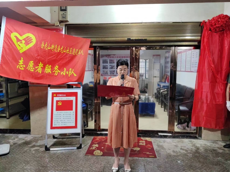4月18日,赫山区会龙山街道会龙山社区退役军人志愿服务队党支部成立揭牌仪式举行,这是益阳市第一个退役军人志愿服务队党支部。赫山区委常委、组织部部长王琛,区退役军人事务局党组书记、局长谢国长共同为党支部揭牌,区委组织部副部长田亮指导讲话,会龙山街道党工委书记夏文娟主持揭牌仪式。