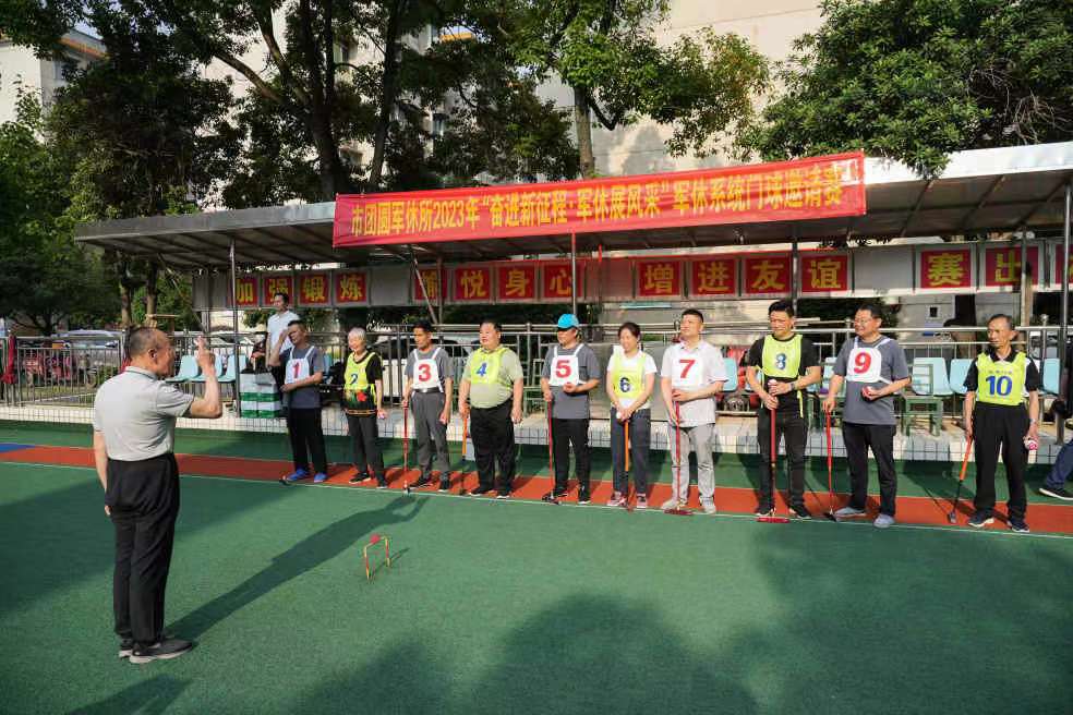 5月19日,市团圆军休所邀请全市军休系统近100名军队离退休干部在赫山区公安局院内开展“奋进新征程•军休展风采”门球赛,旨在丰富军队离退休干部精神文化生活,增进情感交流,展示老干部健康向上的生活方式。