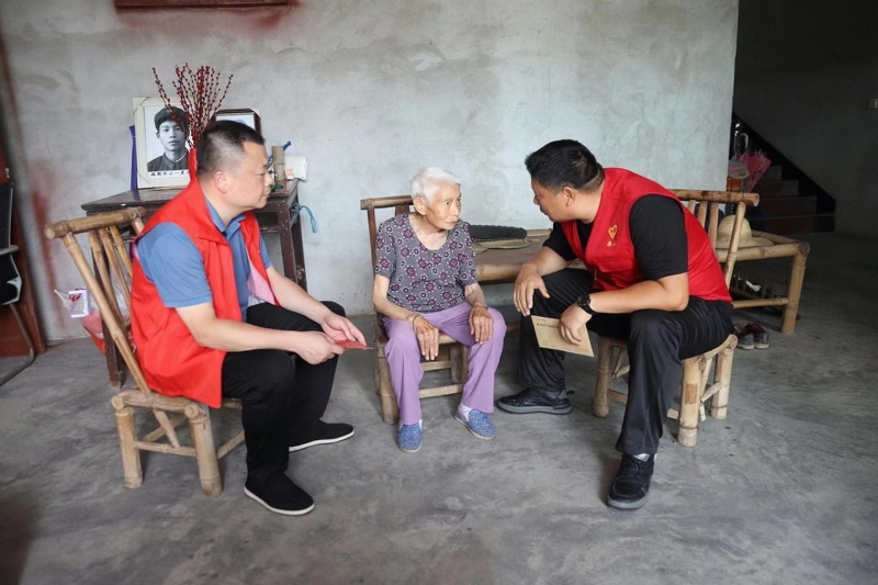 当天下午,赫山区退役军人事务局组织工作人员前往烈士亲属李银莲家中,为她送上了慰问金及节日的祝福,详细询问了她的生活状况和健康情况,并表达了对烈士亲属的深切关怀和崇高敬意。李银莲老人被这份情谊深深打动,眼眶中泛起了泪光。她激动地表示:“衷心感谢党和政府的关怀,这份温暖让我倍感安慰。”随后,志愿者们参与到了龙光桥街道锣鼓村赵家塘组烈属爱心路的维护工作,他们手持工具,清除道路两旁杂草和障碍物,让这条承载着英烈记忆的道路更加平坦、安全。