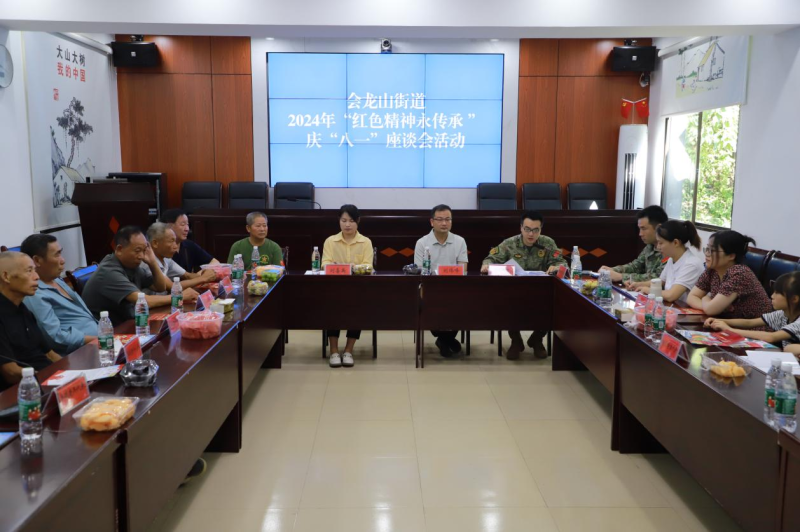 7月31日上午,为进一步传承红色精神推动新时代双拥工作高质量发展,赫山区会龙山街道组织辖区内参战老兵代表、现役军人家属代表、辖区内学生代表举办“红色精神永传承”庆“八一”座谈会,会议由赫山区会龙山街道武装部部长李泽坤主持,退役军人服务站组织实施,大家在一派祥和的气氛中进行了交流。