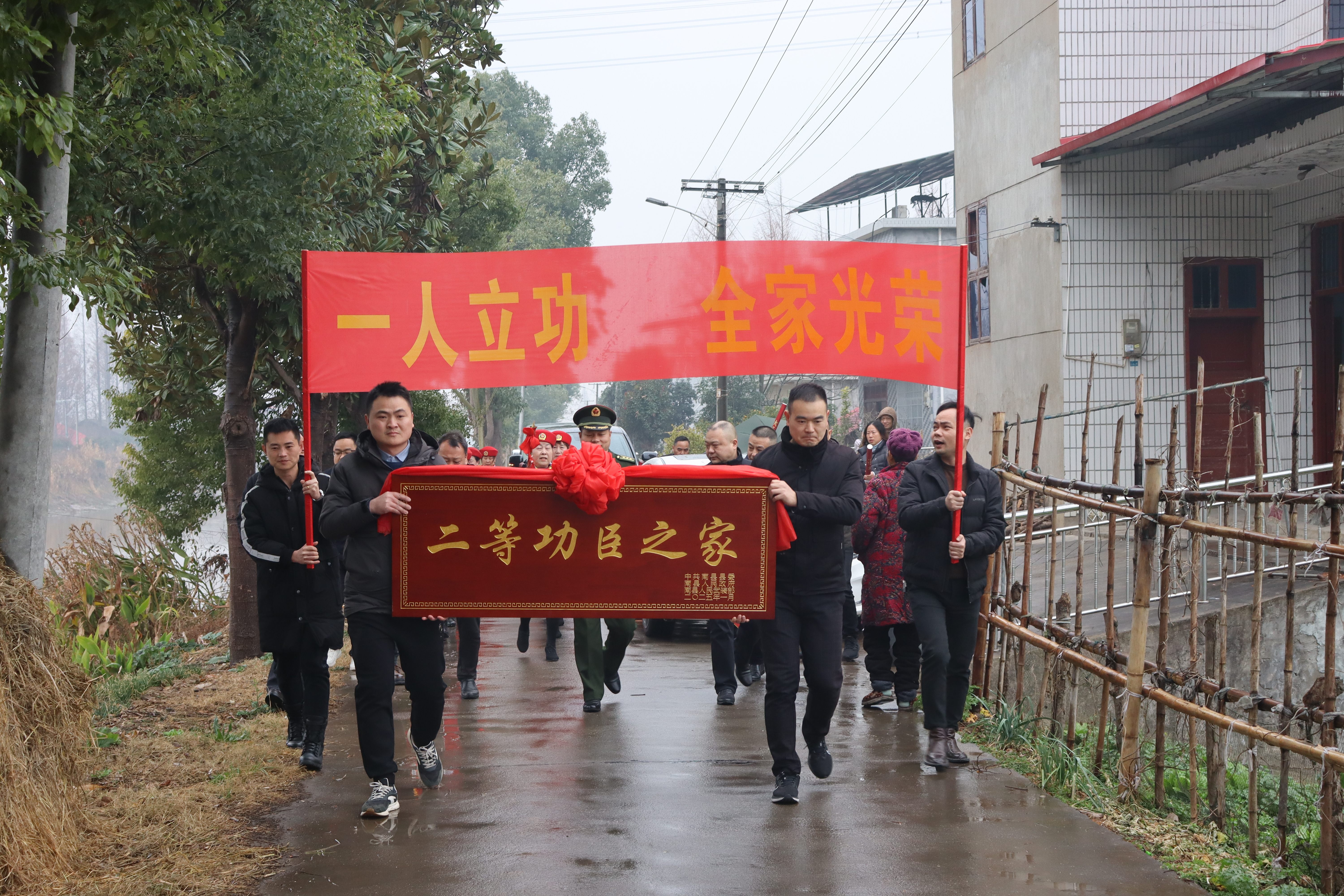 军营建功勋,荣光传故里。近日,南县退役军人事务局联合县人武部及乡镇退役军人服务站,共同为荣立二等功的曾斌、周敏两名现役军人及家属集中送喜报。