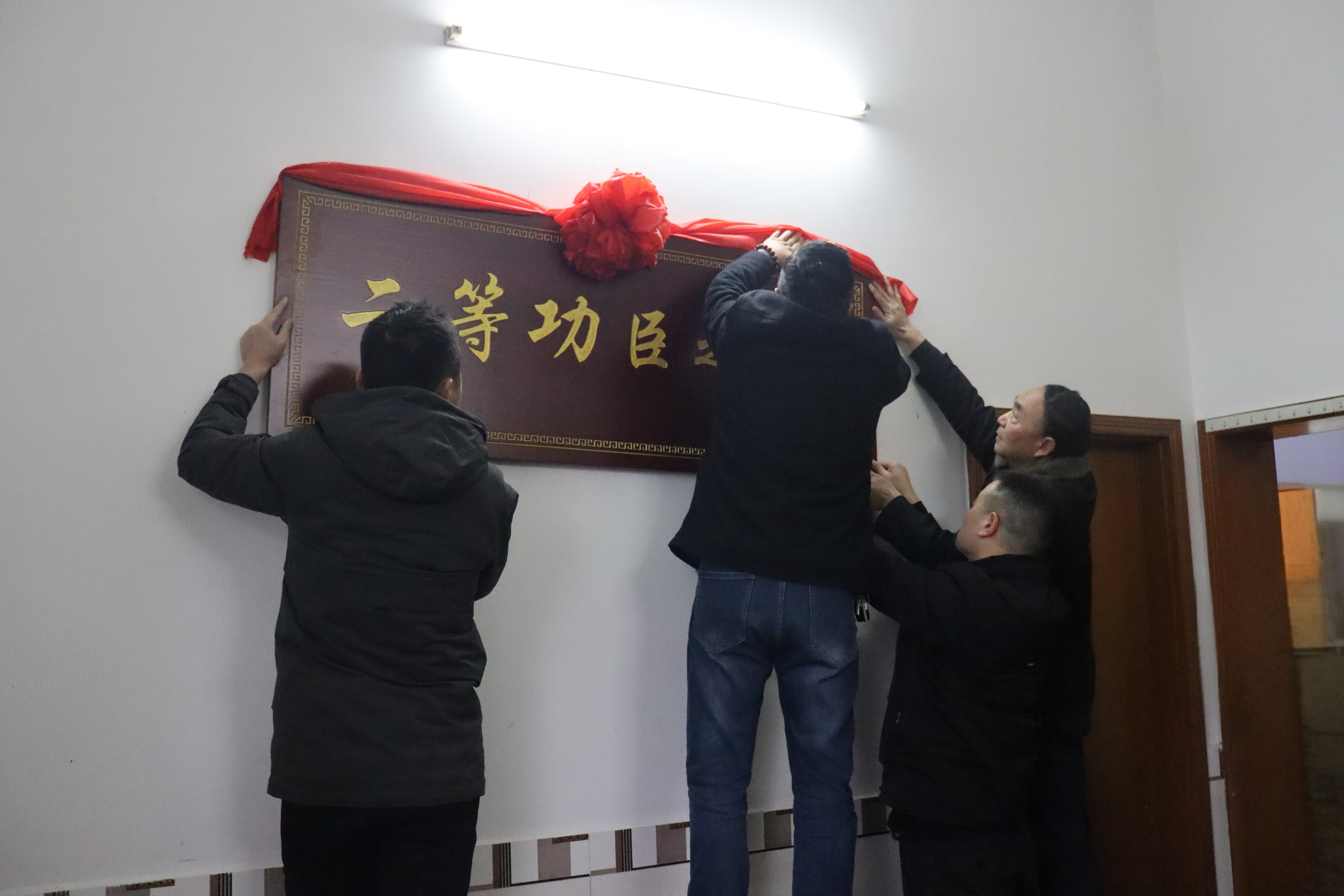 为荣立二等功的曾斌及家人送去牌匾与立功奖金