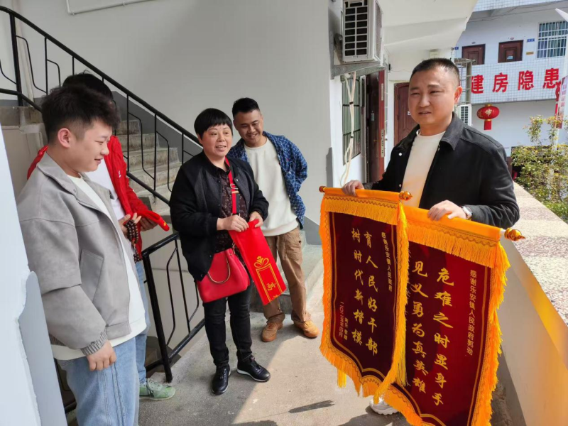 4月8日上午,被救小女孩家人和司机特意来到乐安镇人民政府,为关键时刻挺身而出、见义勇为的郭劲送上锦旗,表达感谢。同时,郭劲的英勇事迹也在当地迅速传开并引起强烈反响,纷纷为他的义举点赞。