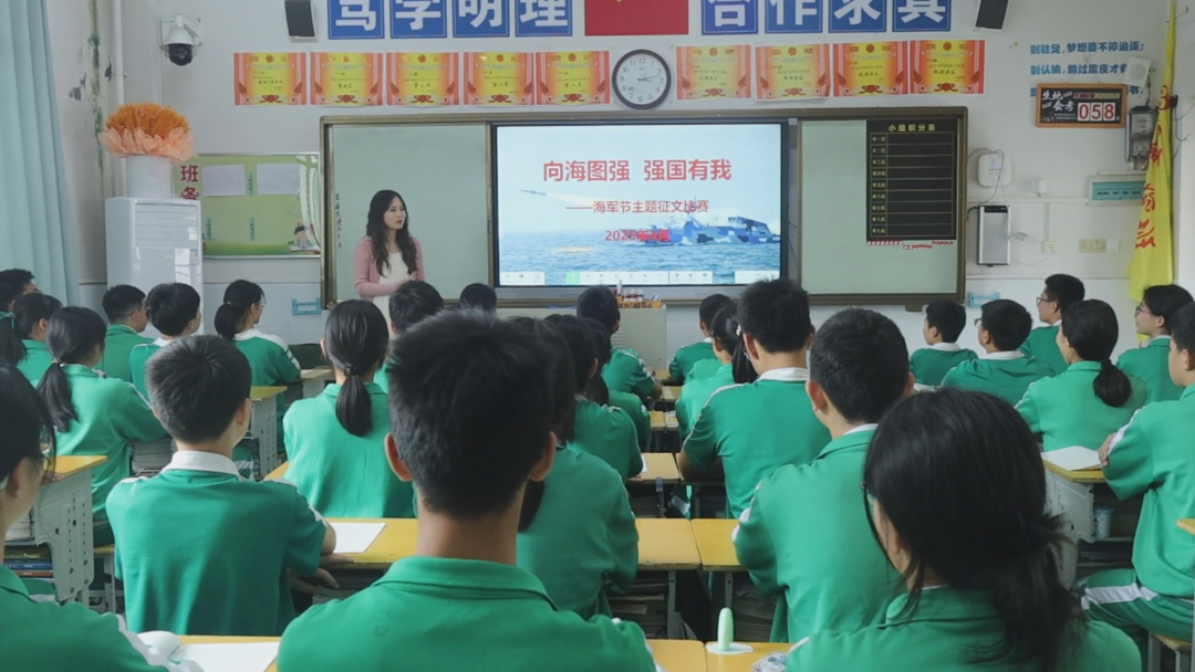 “向海图强、强国有我”主题征文比赛中,学生们以笔为帆,书写人民海军从黄水走向深蓝的壮阔征程,一篇篇饱含深情的文章,既有对“逐梦深蓝”的敬仰,也有对新时代青少年使命的思考。绘画作品展上,孩子们用斑斓色彩描绘舰艇劈波斩浪、战机翱翔海天的英姿,一幅幅充满梦想与力量的作品,勾勒出学子心中大国海军的巍峨形象。