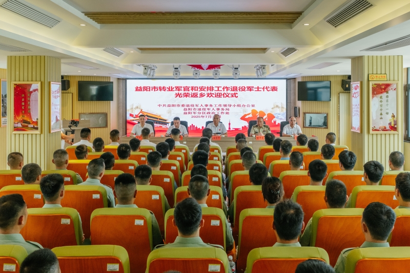 7月25日,益阳市举办“戎归益阳·再立新功”转业军官和安排工作退役军士代表光荣返乡欢迎仪式,迎接退役军人载誉归来。下午3点,仪式在雄壮的国歌声中拉开帷幕。