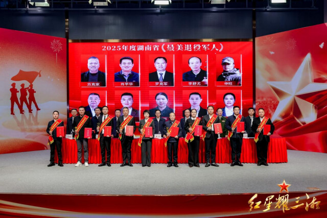 25日,“红星耀三湘”2025年度湖南省“最美退役军人”和“最美拥军人物”学习宣传活动在长沙举行。活动中,10位“最美退役军人”与10位“最美拥军人物”获颁奖杯、证书。