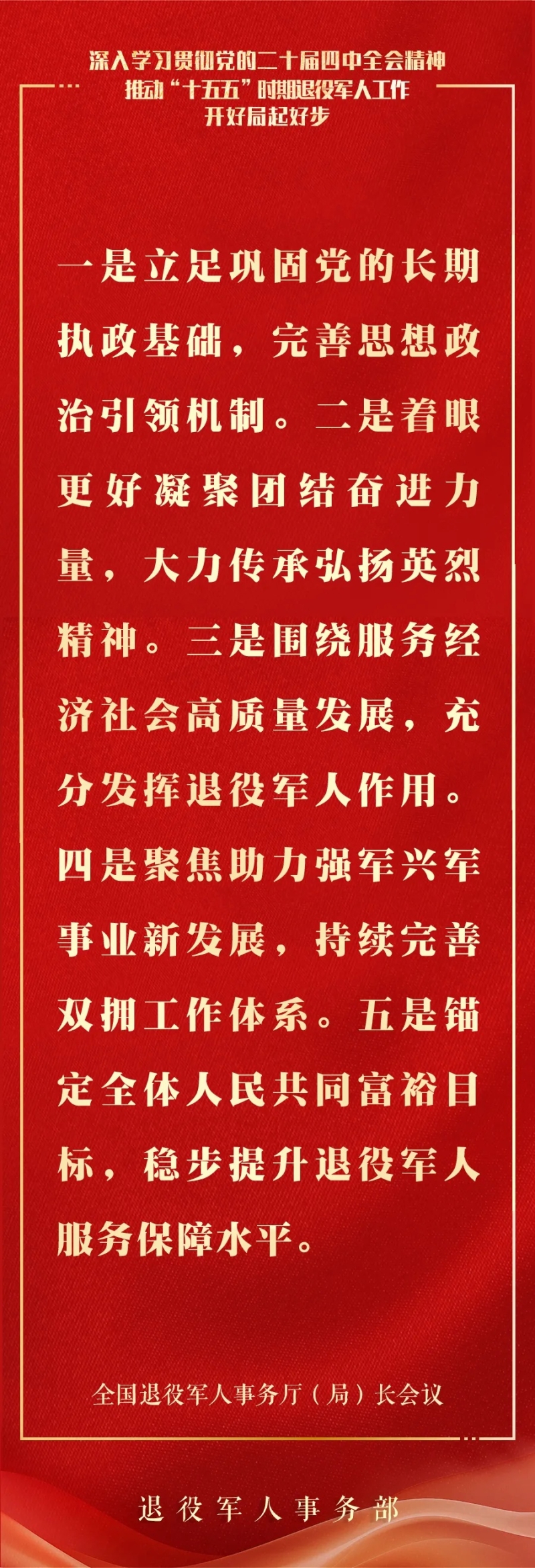 1月8日至9日,全国退役军人事务厅(局)长会议在京召开。退役军人事务部党组书记、部长裴金佳出席会议并讲话。现摘录部分内容,予以刊发。