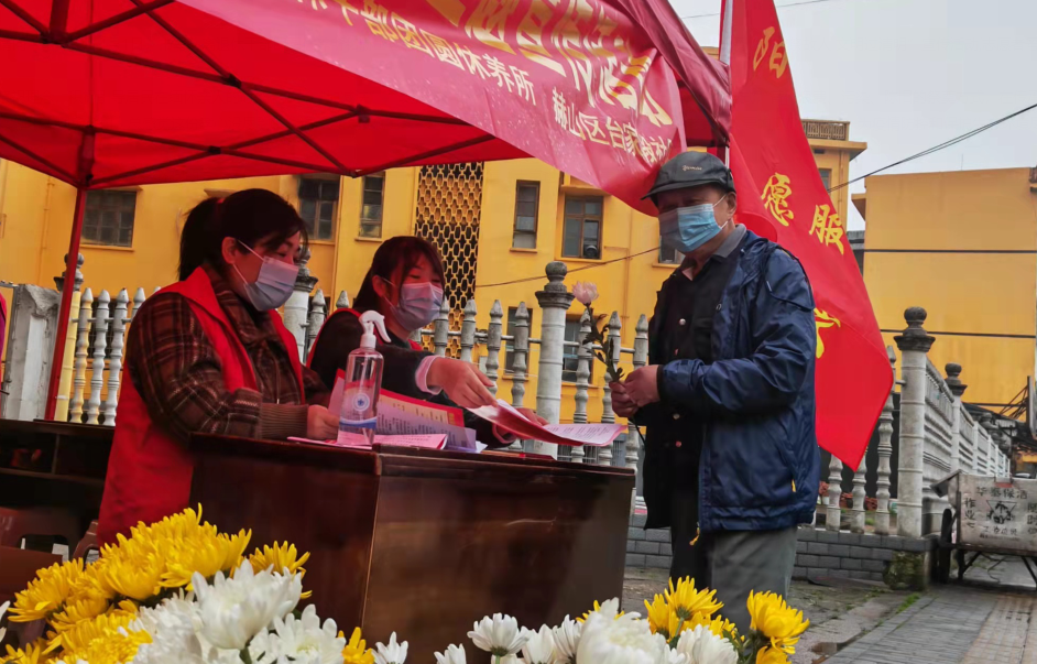 4月1日,市军队离退休干部团圆休养所和赫山区赫山街道台家塅社区的志愿者,在七里桥菜市场附近开展“鲜花祭故人 文明过清明”宣传活动,志愿者号召大家文明祭祀,告知居民让外地亲友尽量不要返益。