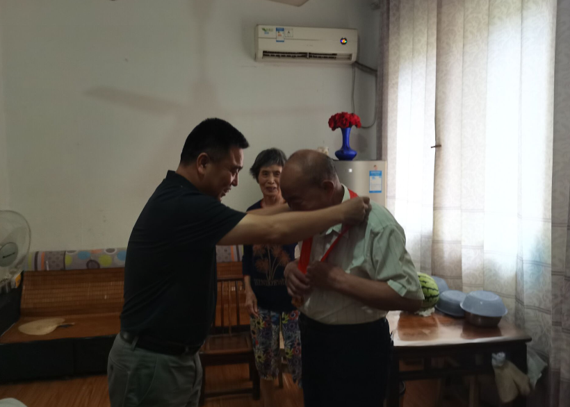 相关负责人首先来到军休职工、老党员赵德安家中,详细询问了他的身体状况和生活情况,为其颁发了“光荣在党50年”纪念章,感谢他曾经作出的贡献。“谢谢组织对我们军休老职工的关心,尤其是颁发的纪念章,让我在感动的同时更加牢记自己是一名党员。”随后相关负责人来到了另一位老党员金寿生老人家中。老人家里虽然不大,但是收拾得干净整洁。“感谢这么热的天气还特意过来慰问,让我感受到了组织的温暖。”金寿生十分感动。老人妻子还为大家送上自家制作的擂茶,为大家消缓暑意。此次活动共慰问了21位老党员,为其中2位送上“光荣在党50年”纪念章。