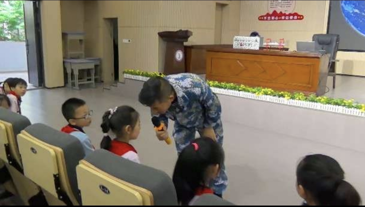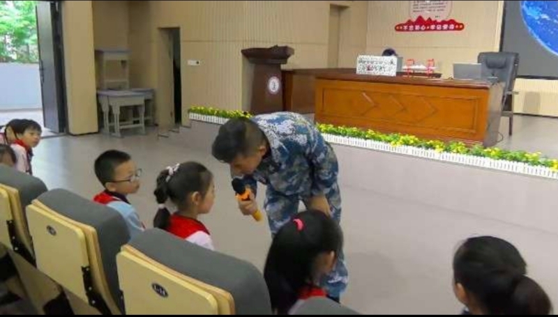 课堂上,谢凌云用一场以少胜多,以弱胜强的海战开篇,瞬间抓住孩子们的注意力。随后,他结合自身服役经历,生动讲述了我国海防事业从起步到逐渐发展壮大的历程,让孩子们深刻感受到祖国海防力量的不断强大,也体会到军人保家卫国的艰辛与担当。