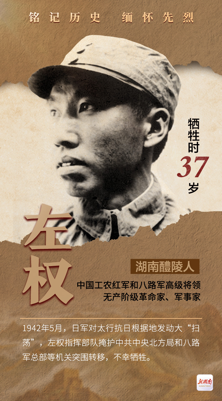 1942年5月25日,八路军副参谋长左权将军在指挥北方局和八路军总部突围转移时,不幸被日军炮弹弹片击中头部壮烈殉国,年仅37岁。