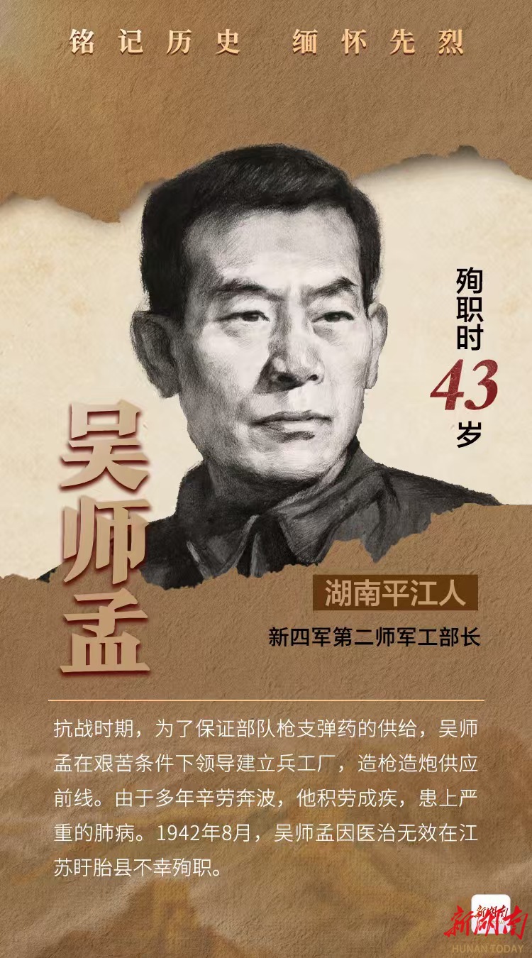 “他是吴师孟,抗日战争时期,为了保证部队枪支弹药的供给,在艰苦条件下领导建立兵工厂,最终积劳成疾病故。”湖南烈士公园管理处文物保护部文保专干张晓笛向记者讲述起她心中的英雄。