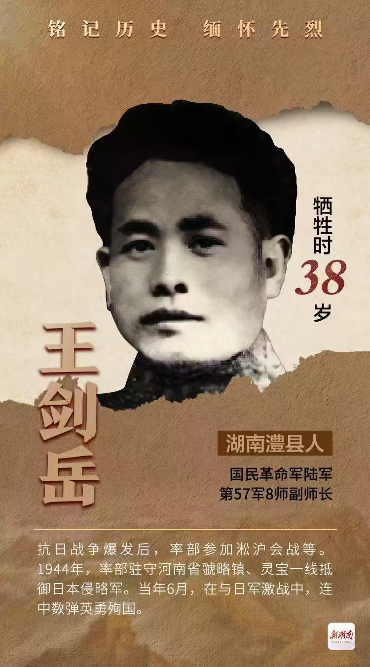 如今,河南省灵宝市专门修建了抗日英烈纪念碑,深切缅怀王剑岳及在灵宝战役中英勇杀敌为国捐躯的全体爱国将士。