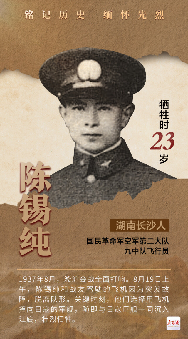 霎时,敌舰倾侧,随着一阵天崩地裂的爆响,“904”号与日寇巨舰一同沉入江底,陈锡纯壮烈牺牲,时年23岁。