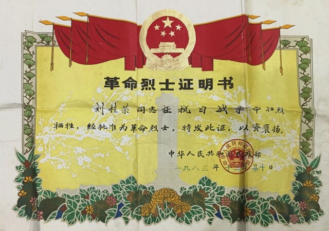 “小爷爷在外征战这些年,从来没有给家里寄过一张照片,这张证明书便是他留给我们唯一的念想。”7月13日,刘二来小心翼翼地从柜子里拿出刘桂云烈士的《革命烈士证明书》,向记者讲述起堂爷爷刘桂云烈士的英雄事迹。
