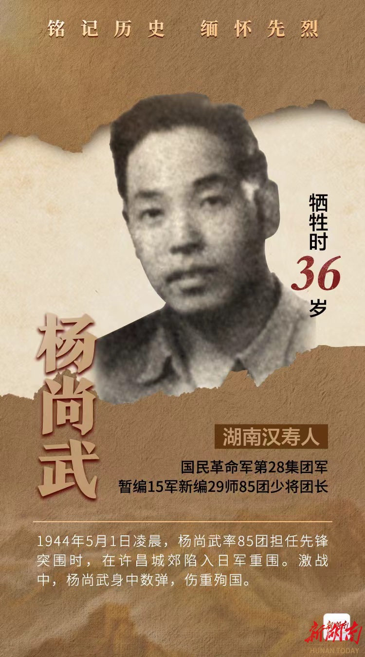 英雄之光,永不熄灭。如今,杨尚武的名字被镌刻在故乡汉寿县的革命烈士纪念碑上,时刻提醒着后来者铭记抗战历史,传承爱国情怀,为实现中华民族伟大复兴的中国梦而努力奋斗。