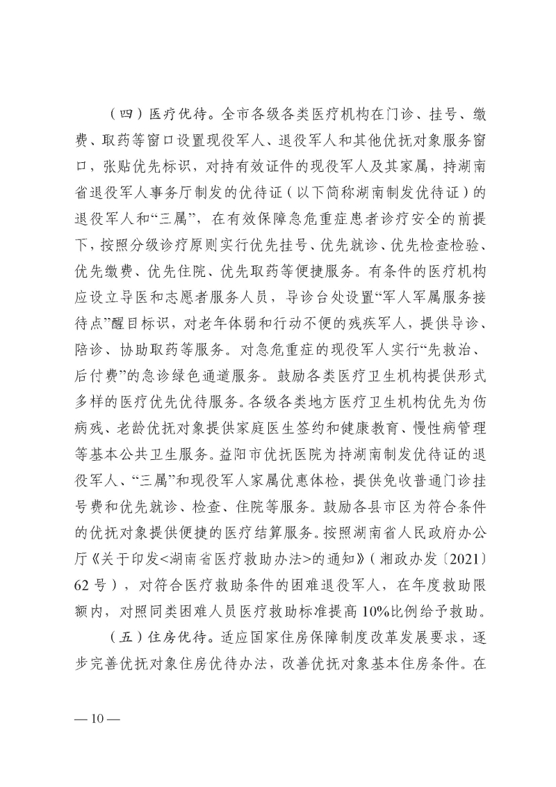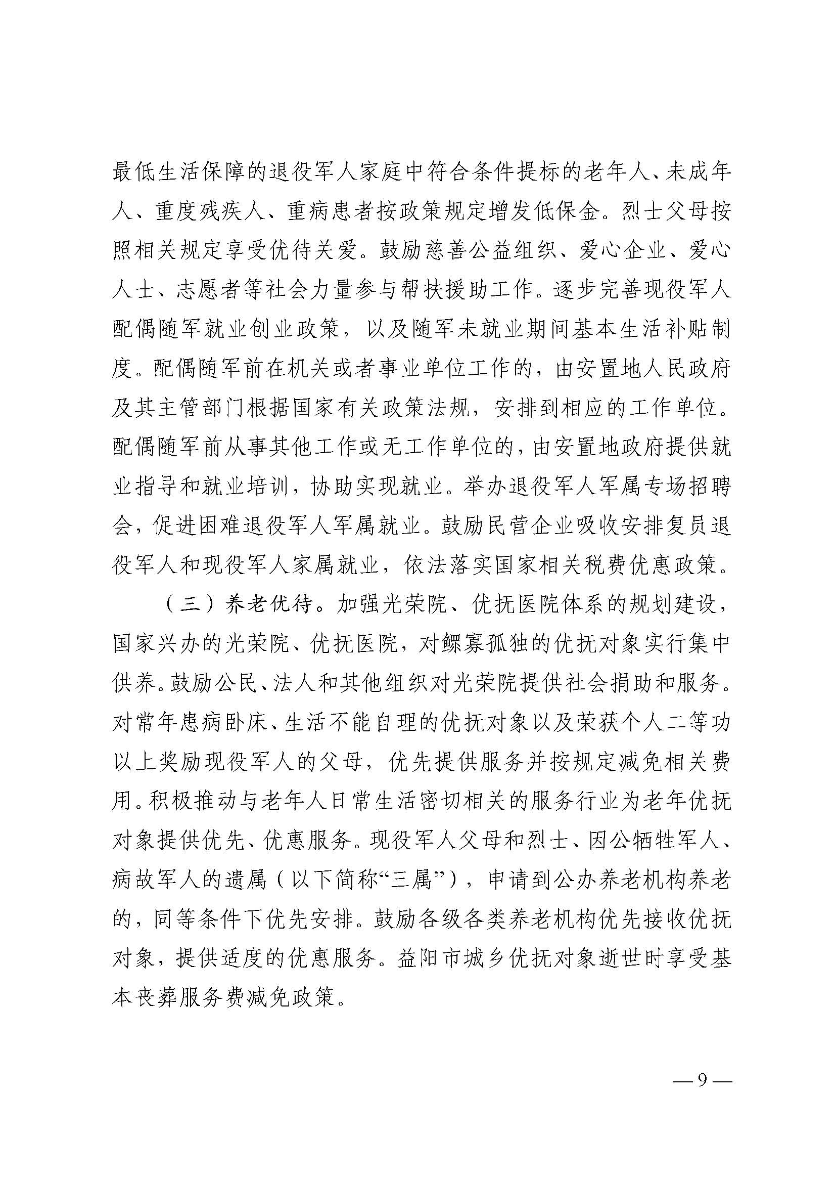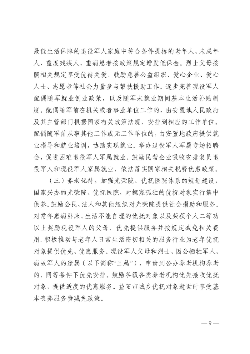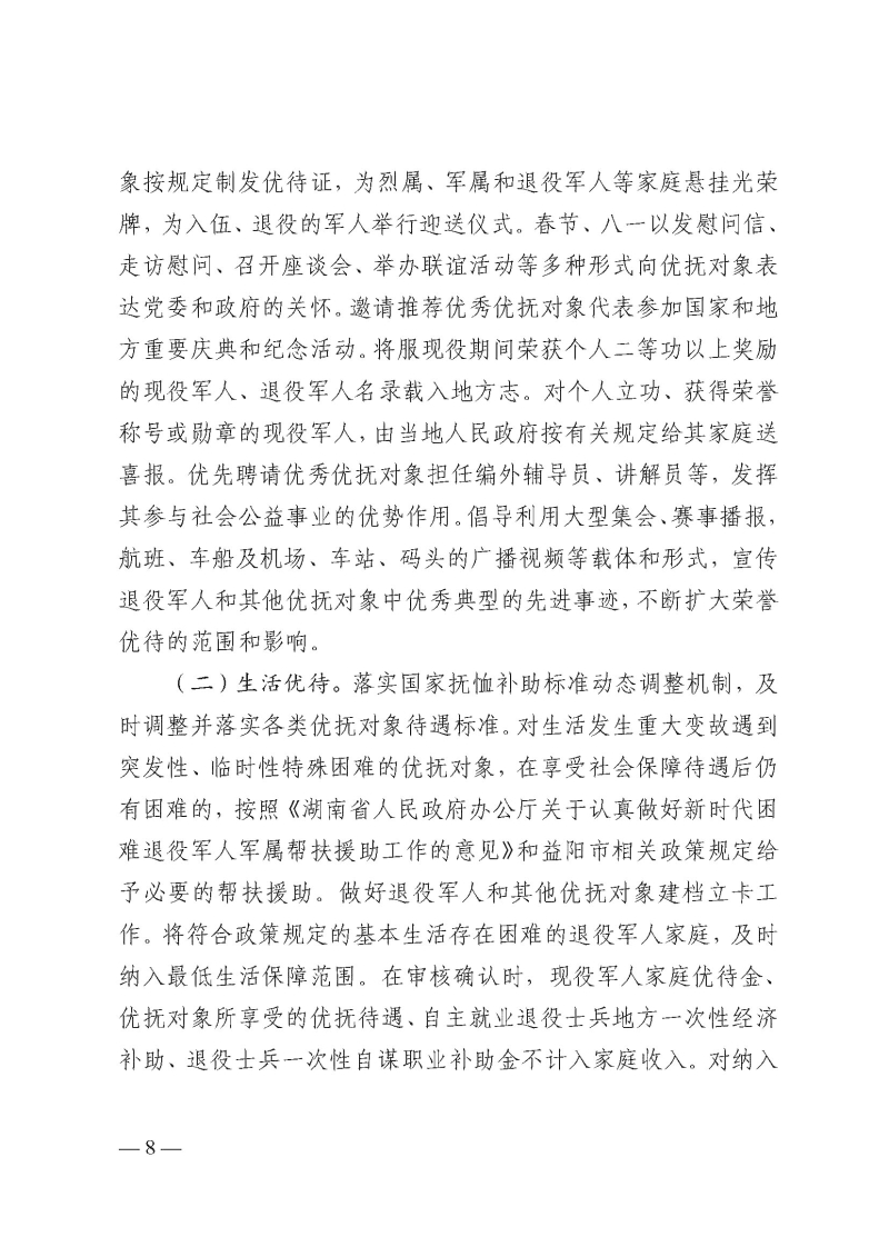 文字解读:《益阳市加强军人军属、退役军人和其他优抚对象优待工作的实施意见》
