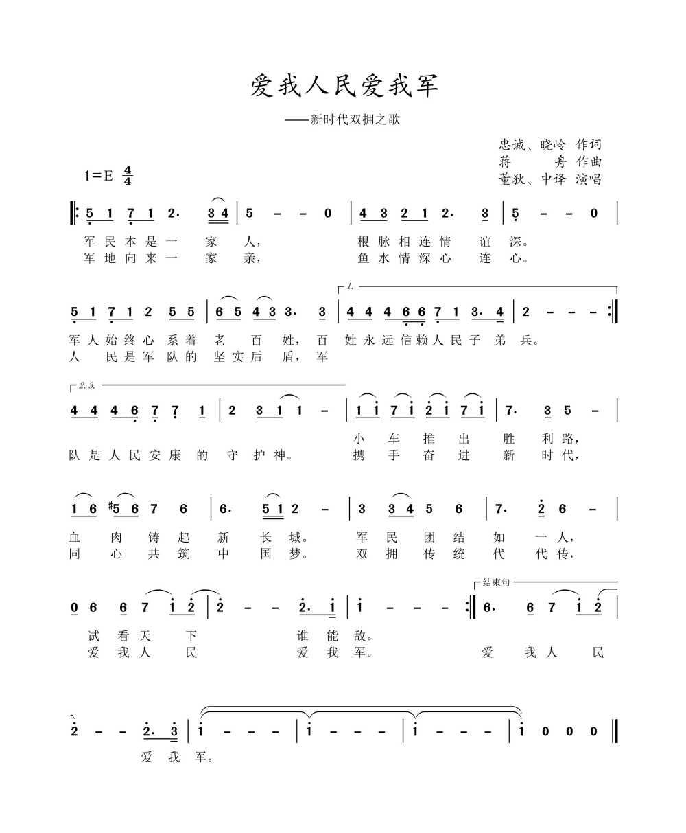 双拥主题歌曲以“爱我人民爱我军”为主题,深入贯彻落实习近平总书记关于双拥工作重要论述和重要指示批示精神,多维度展现双拥工作、军政军民团结的优良传统和特有优势,立场坚定、主题鲜明;将军民守望相助、血肉相连、精诚团结、敢于斗争等元素和壮阔的人民战争画卷、军民携手奋进新时代新征程的昂扬风貌等,有机融入到简洁凝练的词曲中,高扬主旋律、讴歌鱼水情,充分彰显军政军民团结的磅礴伟力,寓意深刻、内涵丰富;将充满温情的民歌曲调与气势恢弘的交响乐曲融合起来,用励人奋进的旋律、情真意切的音符,生动展现双拥优良传统的传承、红色血脉的赓续和奋进新时代新征程的昂扬斗志,明快厚重、催人奋进。