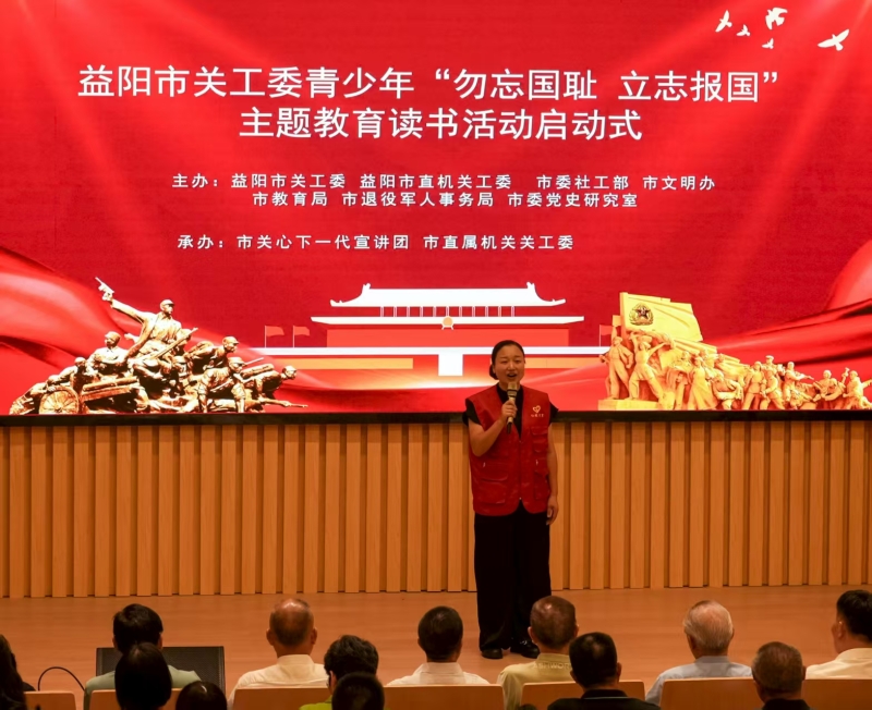 7月9日,益阳市青少年“勿忘国耻立志报国”主题教育读书活动启动式在位于清溪村的当代作家签名图书珍藏馆举行。市关工委主任彭建忠宣布活动正式全面启动。市关工委执行主任陈恒祥,副主任袁国军,市委组织部副部长、老干部局局长、市关工委副主任陈国圭,市退役军人事务局局长姚雪华,市关工委副主任杨克昌、李双建,市直机关工委副书记田立新,市委党史研究室副主任刘松山等出席仪式。市关心下一代宣讲团、“益阳UP”红色少年宣讲团成员,市直有关单位负责同志,青少年和家长等200多人参加仪式。