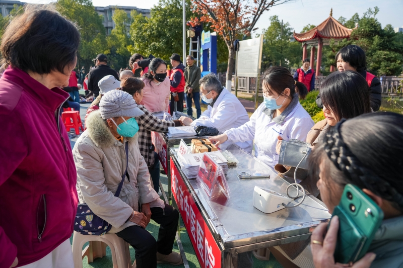 益阳市中医医院的专家为老人们号脉、测血压,详细解答关于慢性病调理、冬季养生等问题。中医体验区的艾灸和耳穴压豆调理也颇受欢迎,让老人们连连称赞传统中医的实效。