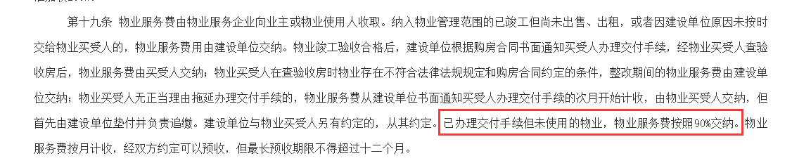 谢谢您接收我的咨询。购房合同约定物业管理费2.0元/平方。房子2021年1月交房(大概日期),2021年6月-12月装修完成,截至目前暂未入住,物业公司一直要求是按整年100%缴纳物业管理费,想咨询一下:这种情况有没有优惠政策;另外,有关文件规定:已办理交付手续但未使用的物业,物业服务费按90%交纳,我现在这种情况满不满足条件。再次感谢