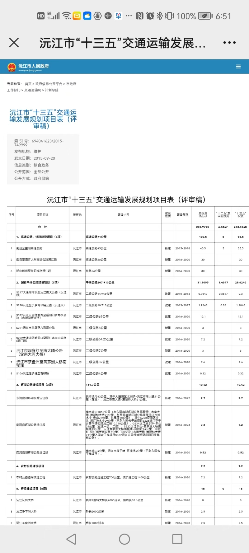 - 来信标题: 关于请求公布沅江市十二五和十三五实际交通建设固定资产投资项目明细(共242亿元)